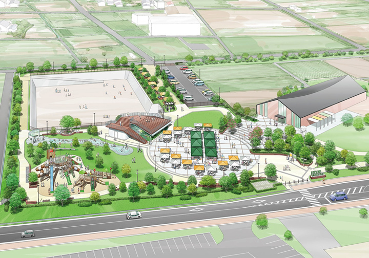 Within the total project area of 28.8 ha, two types of zones will be created: a “private zone” to attract vendors for an outlet mall (tourist gathering facilities) as a means of attracting customers from a wide area, and a “public zone” for developing initiatives to help promote agriculture and tourism while promoting exchange and collaboration among municipalities in the Chichibu area, and region-specific resources.
