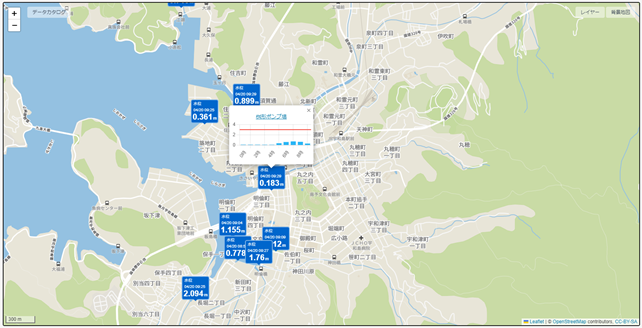 県や市が設置した河川監視カメラ、水位計、気象センサーなどの行政のスマート化に寄与する情報や市民生活に密着した情報をダッシュボード上で可視化することで、災害時の状況把握や職員間の迅速な情報共有が可能になります。